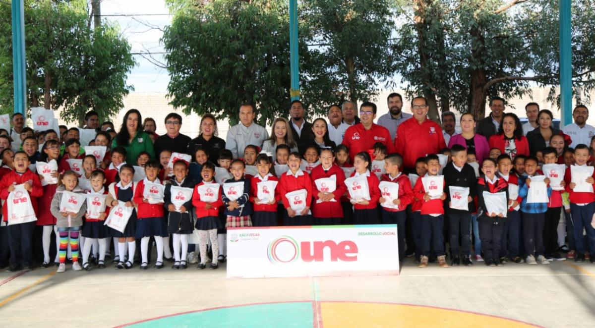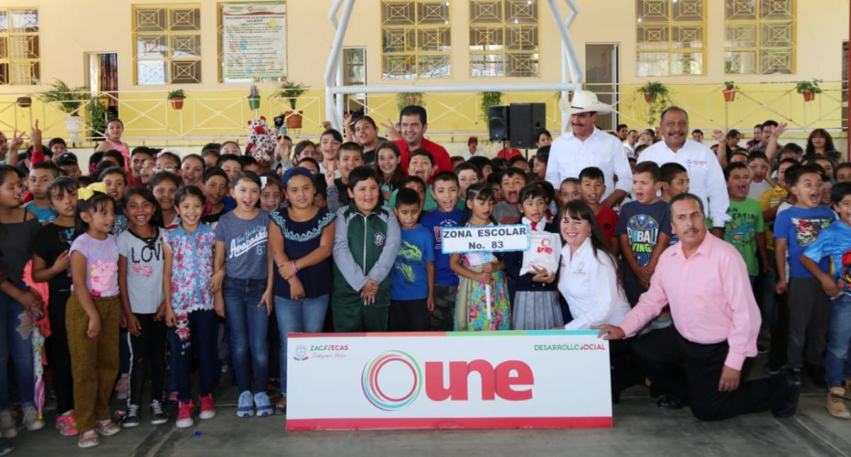Miguel Auza, Zac.- El Gobierno de Zacatecas entregó 22 mil 38 paquetes escolares de la estrategia UNE a 192 escuelas primarias públicas de los municipios de Sombrerete, Río Grande, General Francisco R. Murguía, Juan Aldama y Miguel Auza, con valor de 1 millón 308 mil 775 pesos.