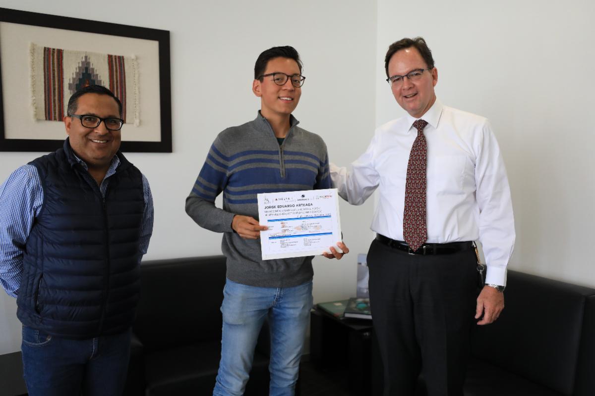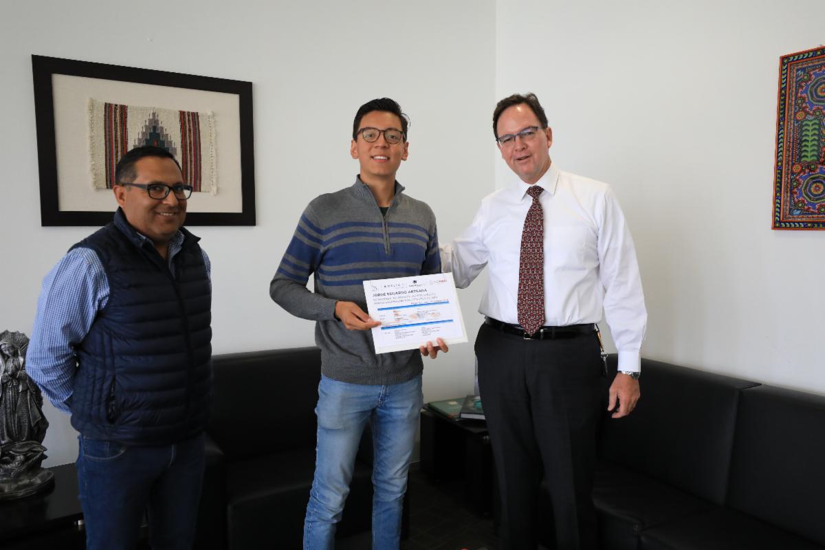 Zacatecas Zac.- La Secretaría de Economía del Gobierno del estado entregó los boletos de avión a Jorge Eduardo Arteaga, un joven talento zacatecano que realizará una estancia en la Administración Nacional de la Aeronáutica y del Espacio (NASA) por sus siglas en inglés.