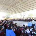 Anunció a la comunidad estudiantil que se les construirá un nuevo módulo de baños, se realizarán trabajos de pintura e impermeabilización, y las y los niños tendrán su propia cancha de futbol de pasto sintético, anunció que particularmente entusiasmó al alumnado presente.