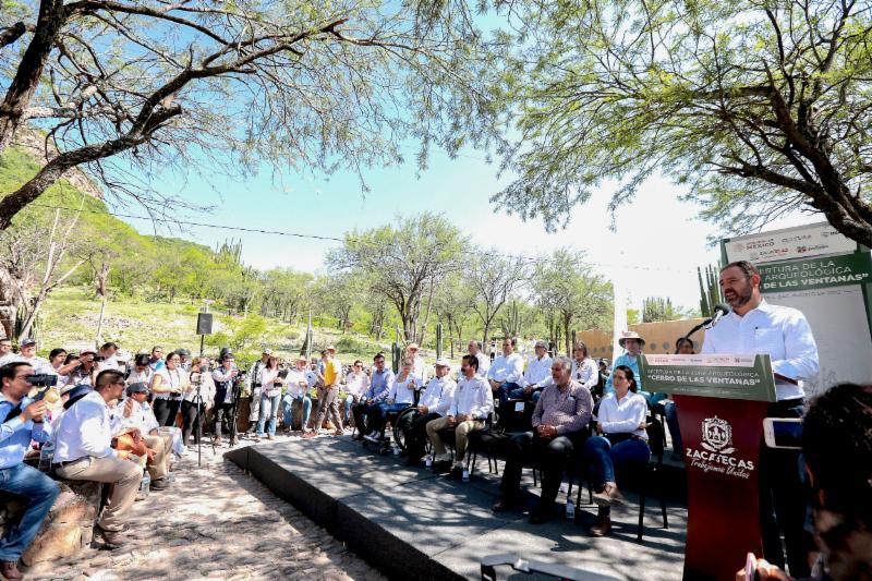 Durante la apertura de El Cerro de las Ventanas, Alejandro Tello y Diego Prieto signaron un convenio de colaboración para rehabilitar la Unidad de Servicios de la Zona de Monumentos Arqueológicos de La Quemada, en Villanueva, además de promover turísticamente este sitio.