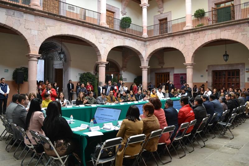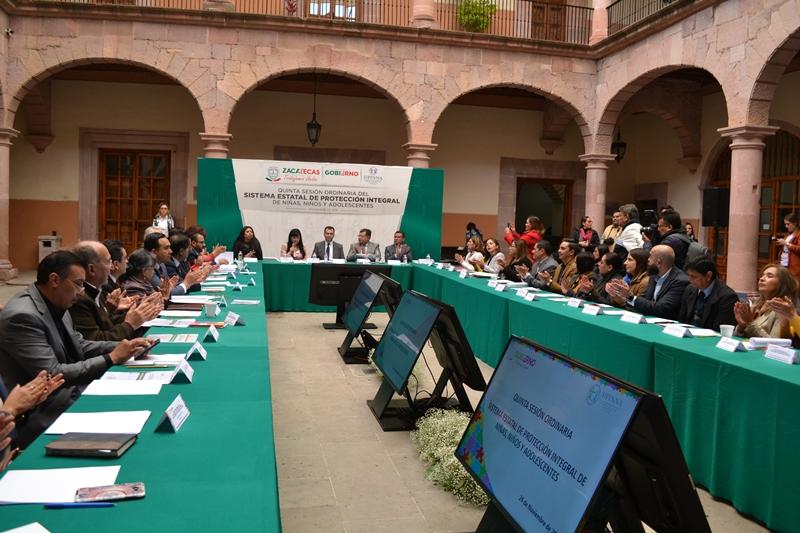 Durante la sesión, dieron a conocer los resultados de algunas de acciones como el programa piloto llamado Todas las Niñas, Niños y Adolescentes en la escuela juntos por su derecho a la educación, que se aplicó en 54 escuelas de preescolar, primaria y secundaria del municipio de Guadalupe, en las que atendieron a 12 mil 735 estudiantes.