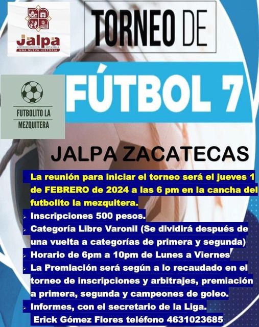 Futbolito de la Mezquitera 29 enero, 202429 enero, 2024efrain La Liga Municipal del Futbolito de la Mezquitera I N F O R M A N TAMBIÉN TE PUEDE INTERESAR 🌮🍽 Menú para hoy martes:
