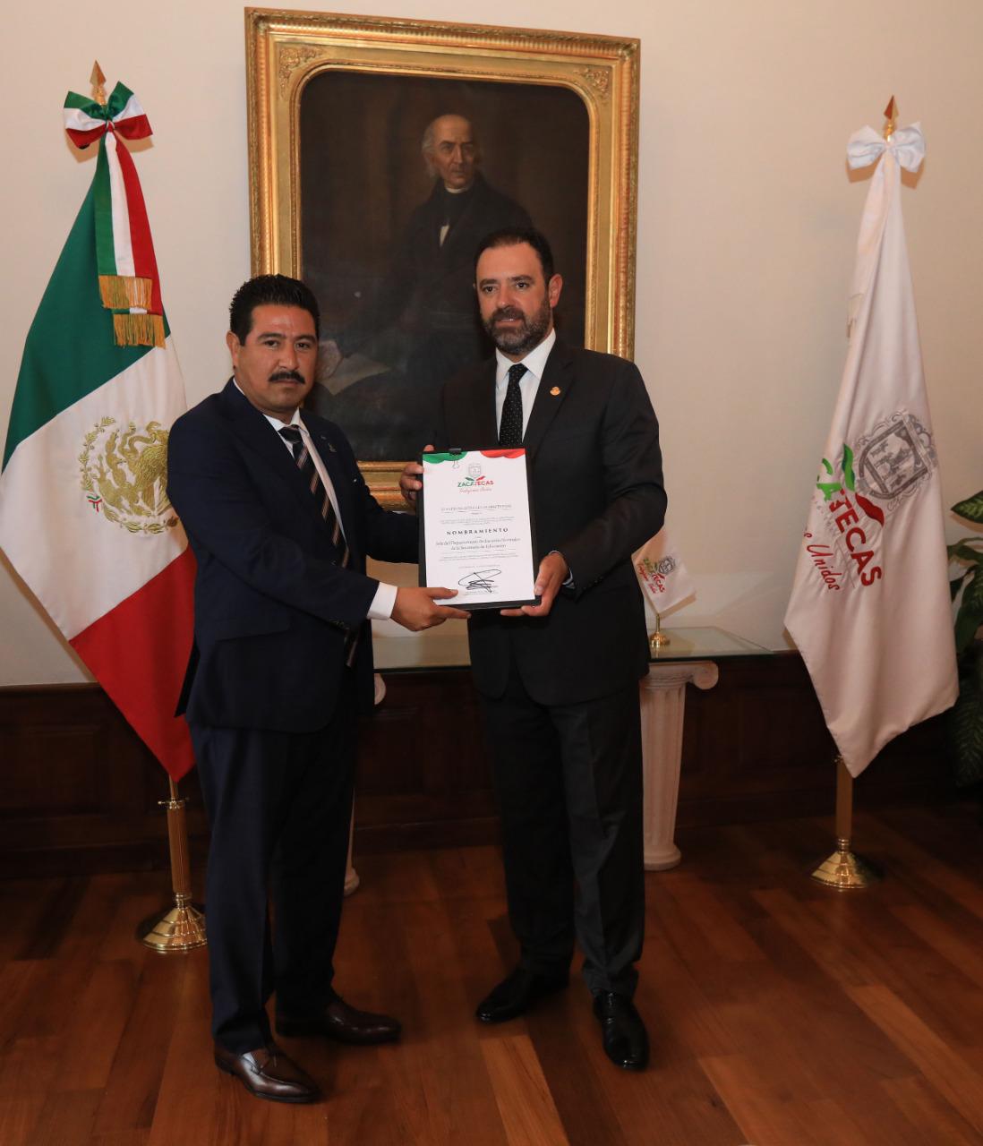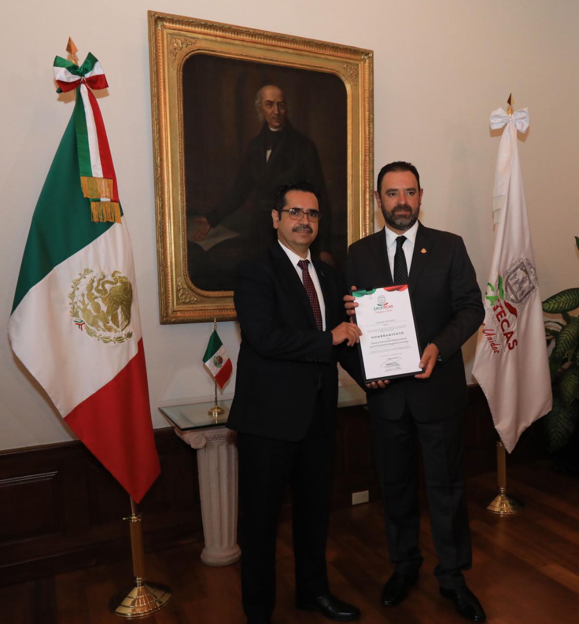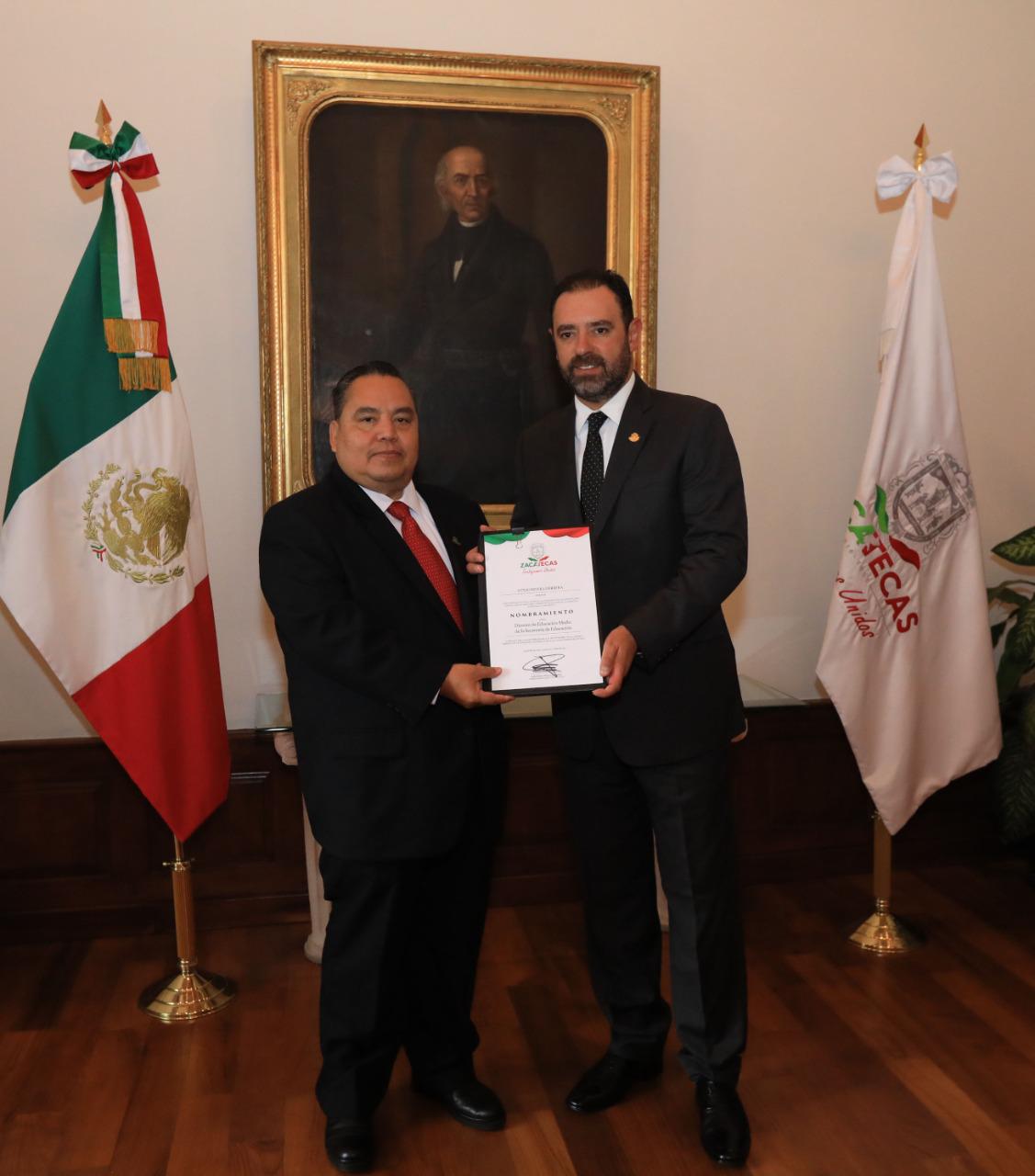 Zacatecas, Zac.– El Gobernador Alejandro Tello tomó protesta y entregó nombramientos a nuevos funcionarios del ámbito educativo y del Sistema Estatal para el Desarrollo Integral de la Familia (SEDIF), a quienes invitó a formar parte de su equipo y trabajar unidos en favor de la sociedad zacatecana.