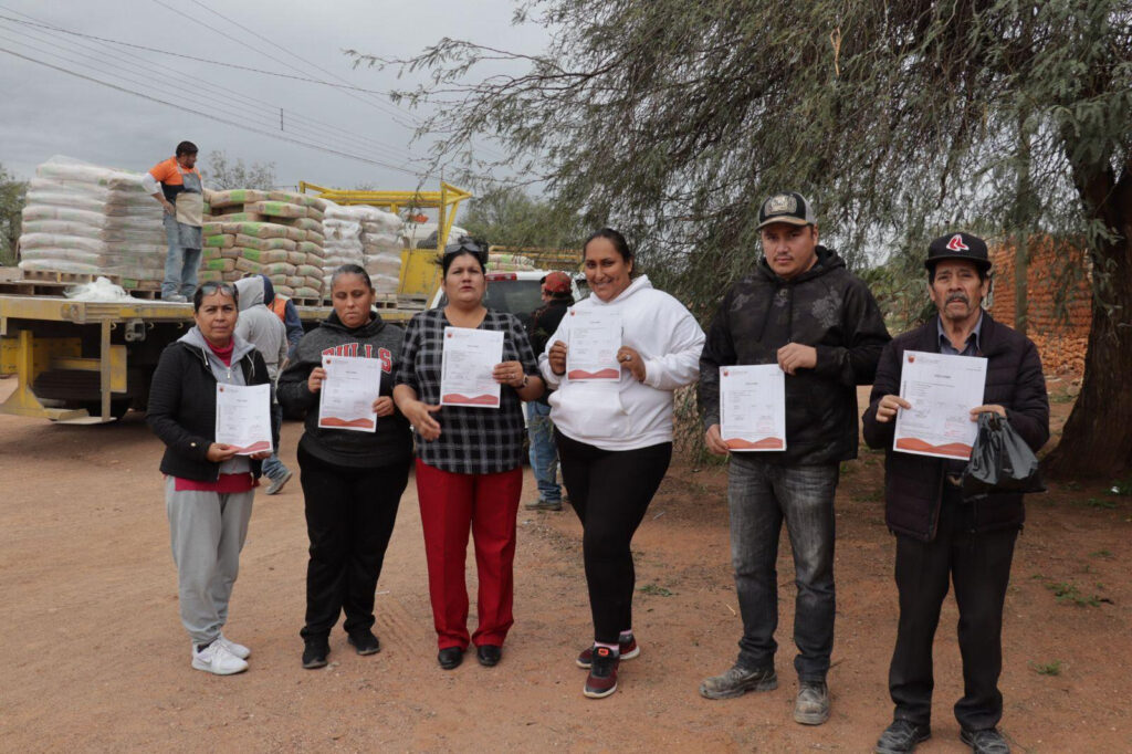 Fresnillo, Zac., 28 de noviembre 2023.- Con el compromiso de apoyar en la economía de las familias de las comunidades rurales del municipio de Fresnillo, el Gobierno de Zacatecas, que encabeza el mandatario estatal David Monreal Ávila, a través de la Secretaría de Desarrollo Urbano, Vivienda y Ordenamiento Territorial (SEDUVOT) entregó paquetes de cemento.