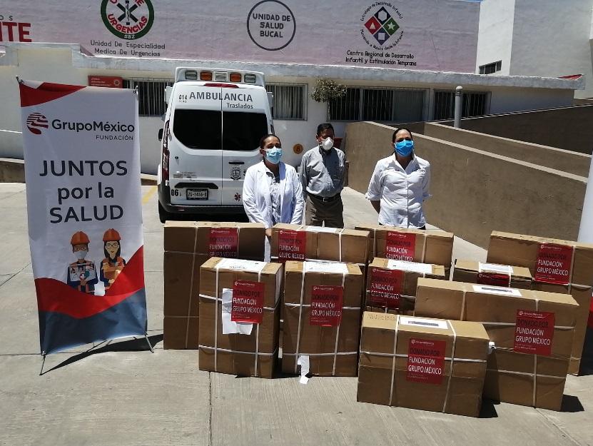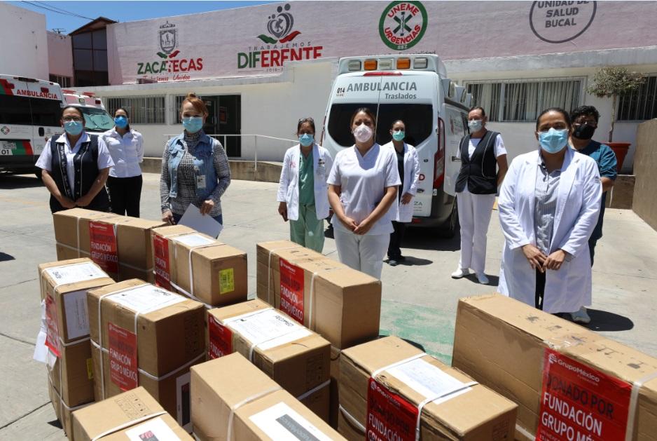 Zacatecas, Zas.- Por gestión del Gobierno del Estado, a través de la Secretaría de Economía, la empresa Grupo México donó 95 mil apoyos médicos para reforzar la atención hospitalaria a pacientes enfermos de COVID-19 en Zacatecas.