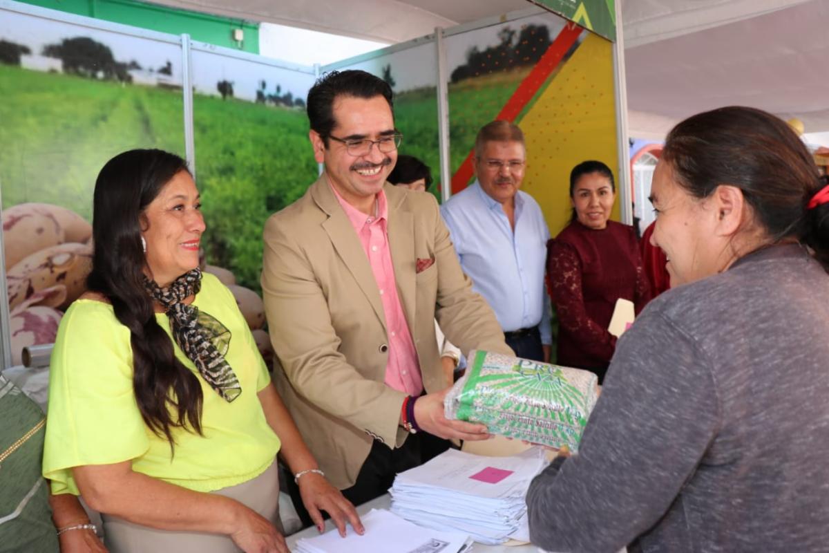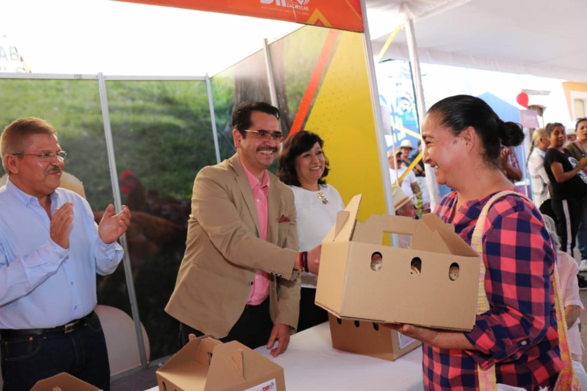 En representación de Cristina Rodríguez, presidenta honorífica del SEDIF, el Director, Omar Acuña Ávila, entregó 70 paquetes de aves de traspatio y árboles de diferentes especies, así como 50 paquetes de focos ahorradores led del programa Mejoramiento a la Vivienda.
