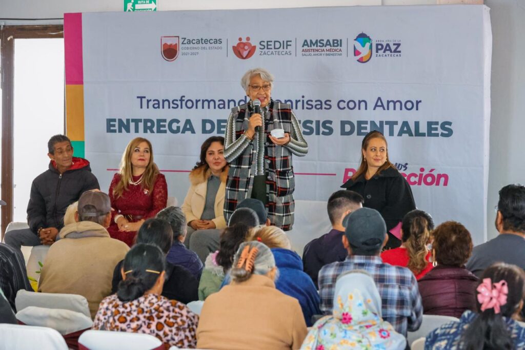 Durante un emotivo evento, la Presidenta Honorífica del Sistema Estatal para el Desarrollo Integral de la Familia (SEDIF), Sara Hernández de Monreal, encabezó la entrega de estos apoyos que incluyen prótesis dentales totales y parciales.