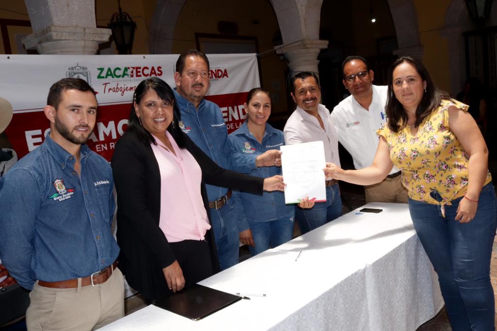 En la firma de escrituras estuvieron presentes Ramiro Sánchez Mercado, presidente municipal de Monte Escobedo; la síndica, María del Carmen Berumen; Eric Sánchez Sáenz, regidor de desarrollo económico social y rural sustentable; Luis Esparza Olivares, diputado local y Pedro de la Cruz Mares, subsecretario de Regularización de la Tenencia de la Tierra de la Seduvot.