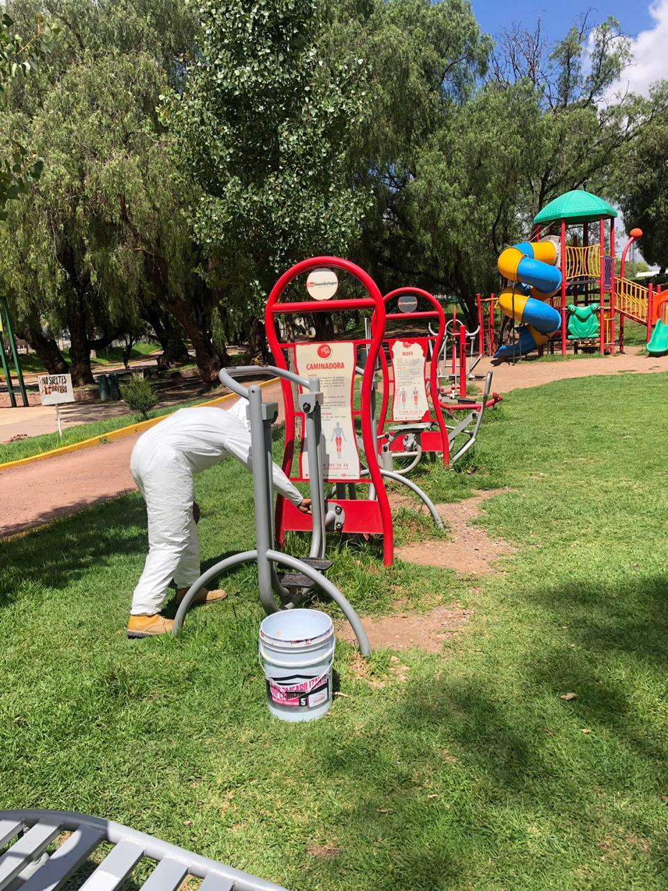 En estas labores participaron cuadrillas de la Dirección de Conservación y Mantenimiento, quienes realizan el operativo de desinfección de espacios públicos como los parques Arroyo de la Plata, La Encantada y Conde de la Laguna, además de la Alameda Trinidad García de la Cadena.