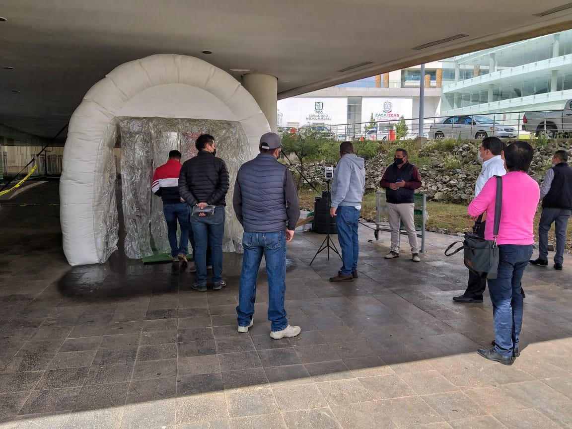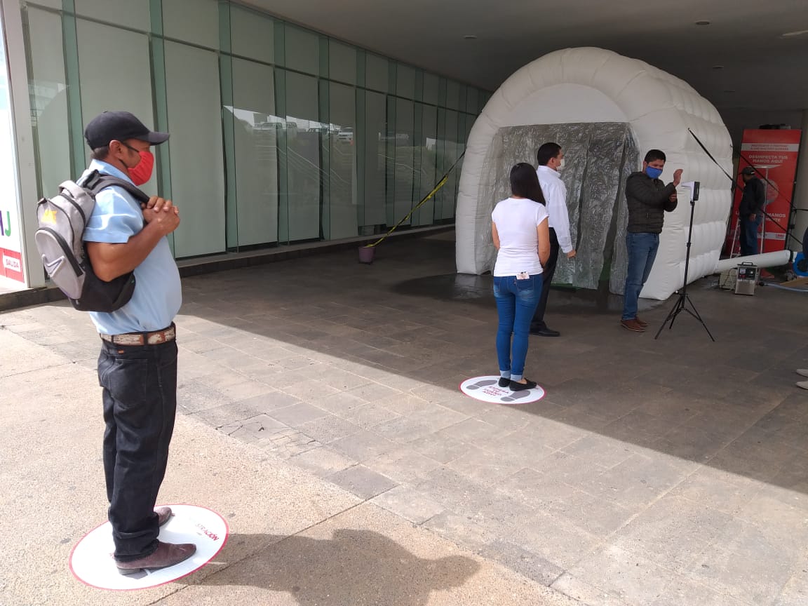 Además, se instalaron tres túneles sanitizantes colocados afuera del edificio F, el sótano del edificio B y la entrada del edificio C, donde se toman los datos de la dependencia del trabajador para su registro y control.