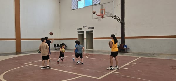 Durante las sesiones, los niños trabajaron en fundamentos como técnica individual, pases, tiros y trabajo en equipo, siempre bajo un enfoque de disciplina, respeto y compañerismo.