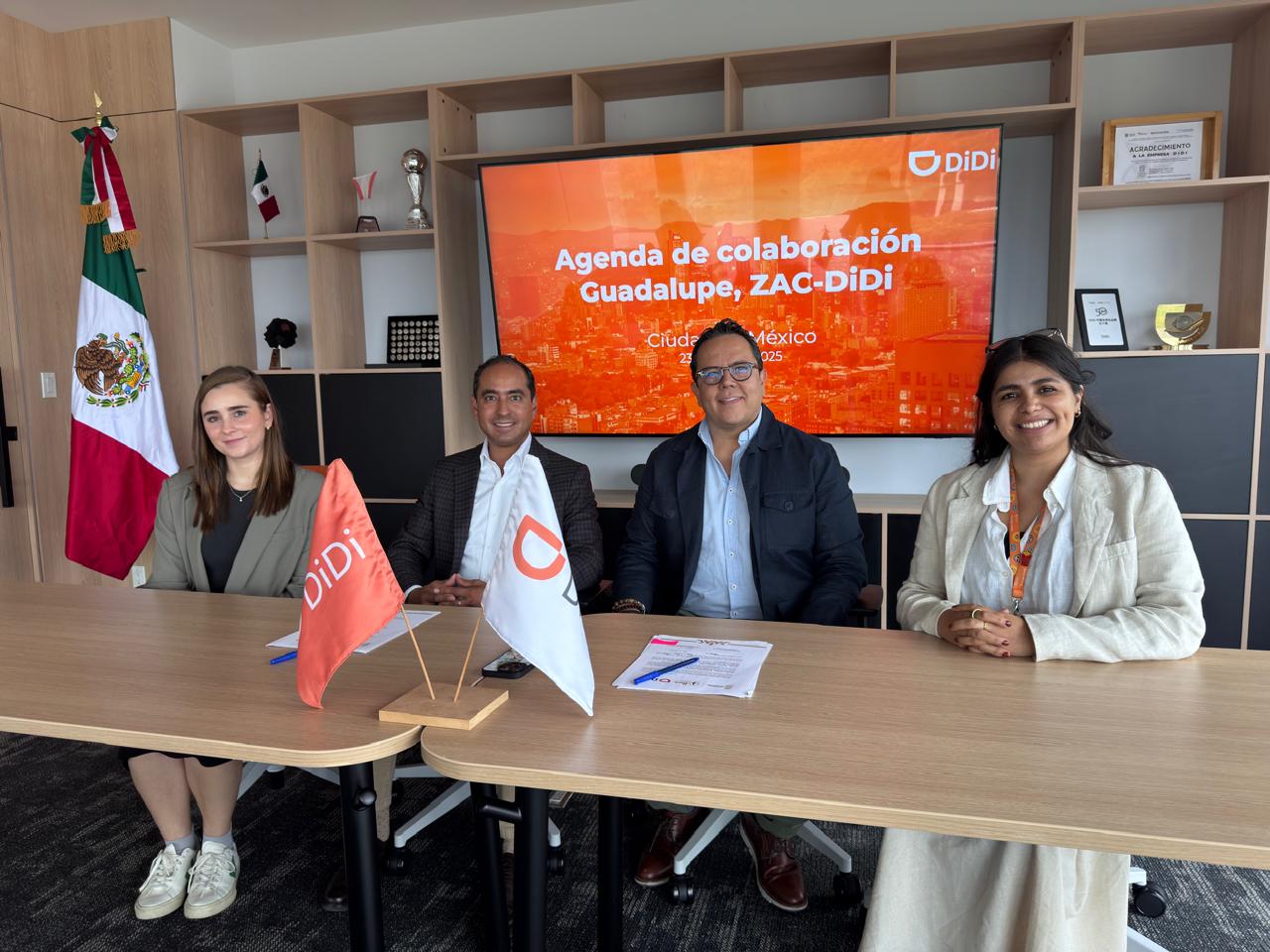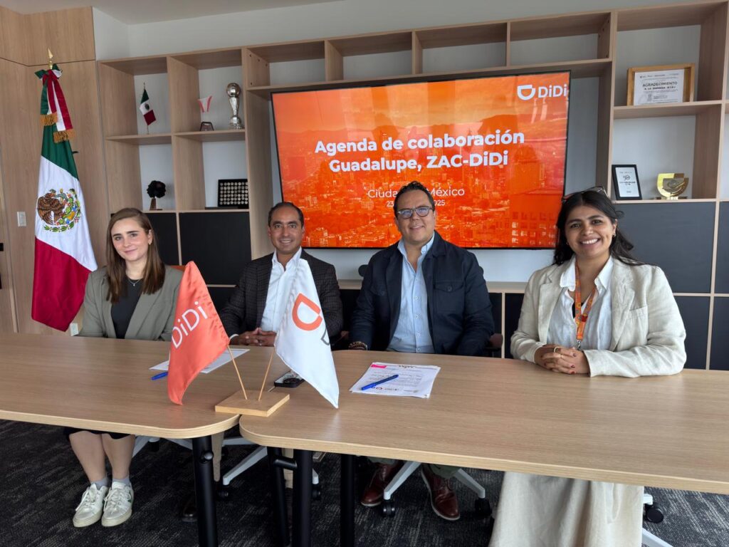 Finalmente, el acuerdo fue signado por José Saldívar Alcalde, Presidente Municipal de Guadalupe, Zacatecas; Analí Infante Morales, Síndica Municipal; María de la Luz Muñoz Morales, Titular de la Dirección de la Mujer Guadalupense; y como representante de DiDi México, Magaly Palacios, Gerente de Relaciones Gubernamentales.
