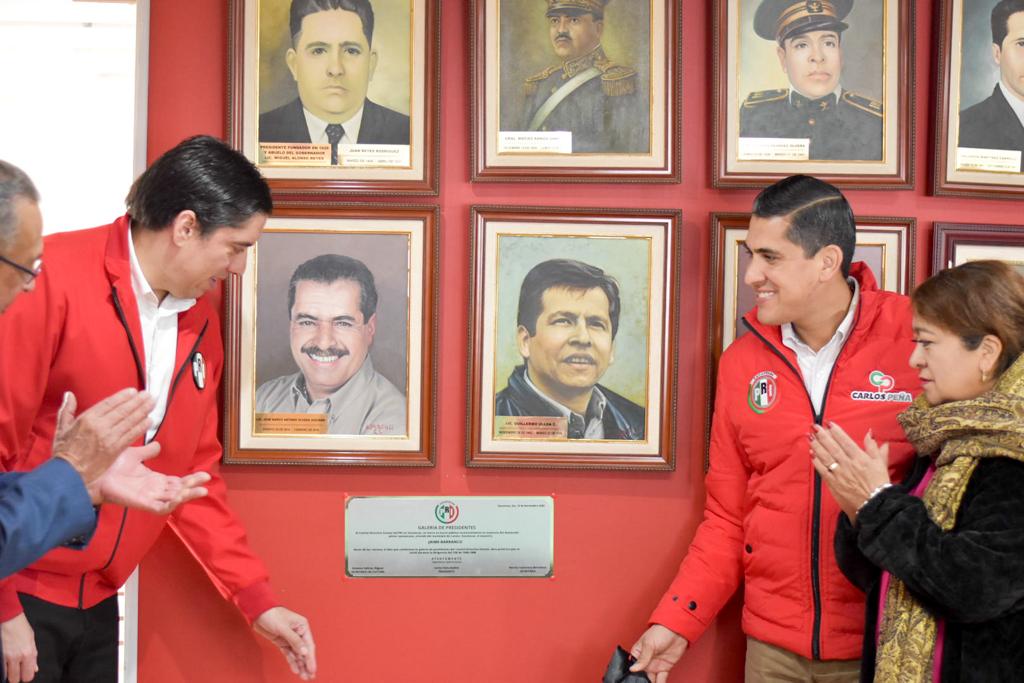 • Con la presencia de su familia y del Secretario de Cultura del CEN del PRI, Bismarck Izquierdo Rodríguez, el Presidente Carlos Peña y el Secretario de Cultura, Gustavo Salinas Iñiguez revelaron una placa conmemorativa en el Salón Presidentes.