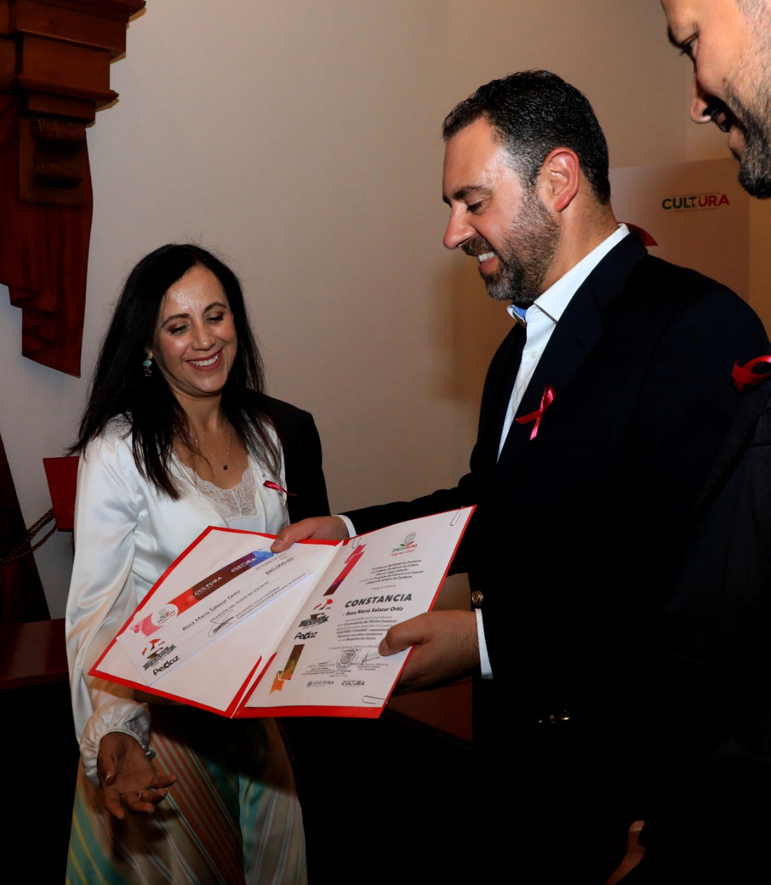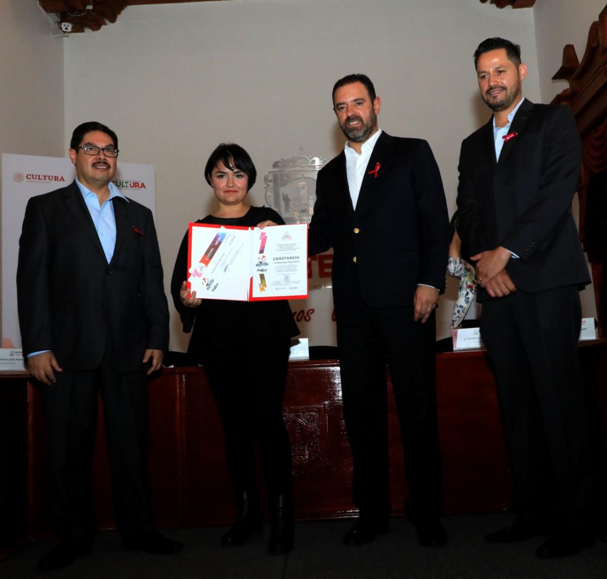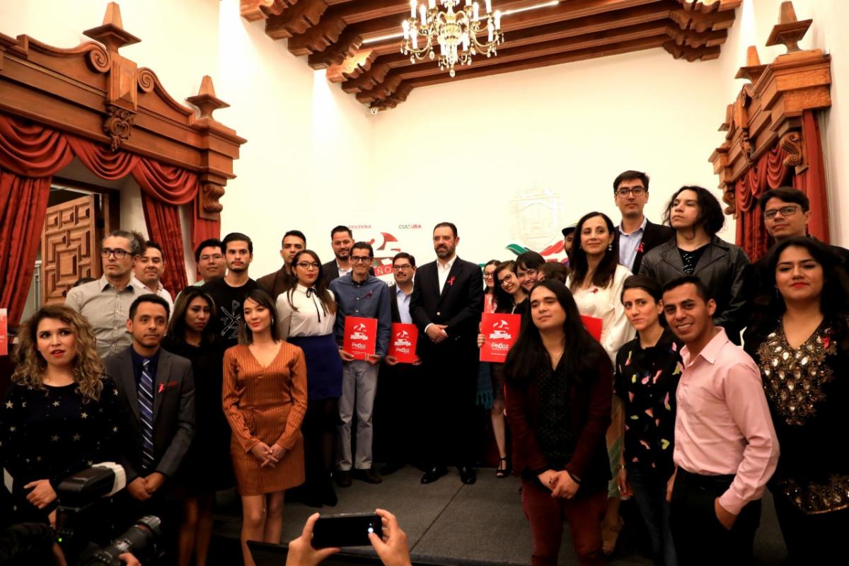El Gobernador Alejandro Tello encabezó la entrega de esta beca para las y los jóvenes creadores, en quienes se invierten 2.3 millones de pesos para el desarrollo de proyectos relacionados a las artes plásticas, literatura, danza, medios audiovisuales, música, teatro y arquitectura.