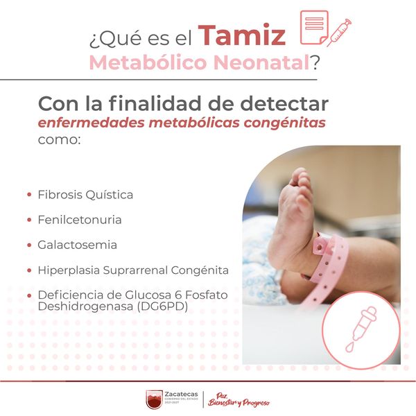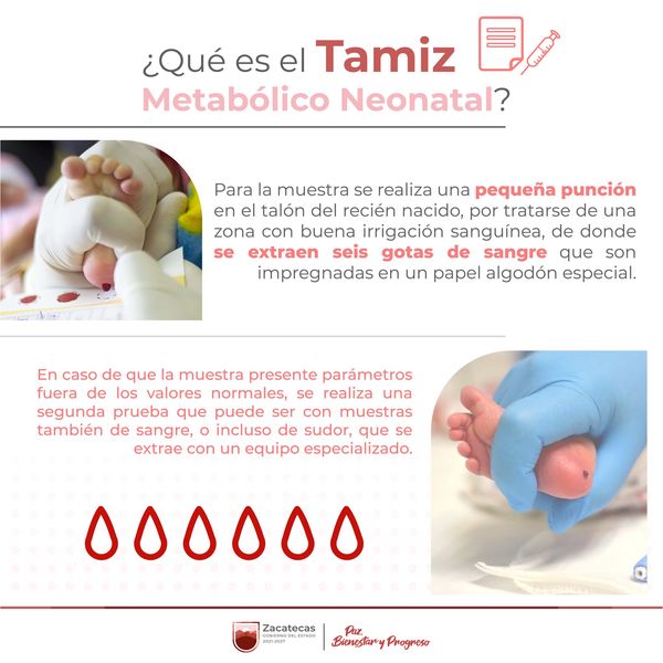 👶I ¿Sabías que en todas las unidades de la Secretaría de Salud (SSZ) se ofrece, sin costo, el estudio llamado Tamiz Metabólico Neonatal? Te compartimos más información acerca de esta prueba.Conoce más en 👉t.ly/oPWYC#PazBienestarYProgreso