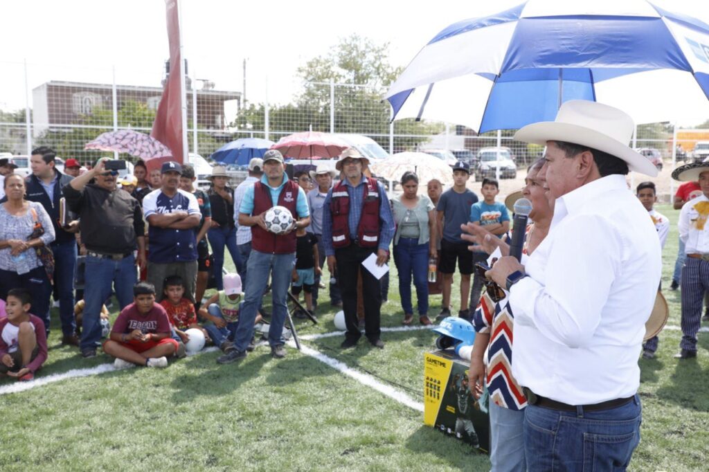 En su gira de trabajo por aquel municipio, el Gobernador David Monreal Ávila también entregó la cancha de futbol 7, que se construyó en la cabecera municipal con una inversión superior a 3.6 millones de pesos, como parte de las obras que impulsa el Gobierno de Zacatecas para promover el deporte como una herramienta de construcción de paz y bienestar de la población.