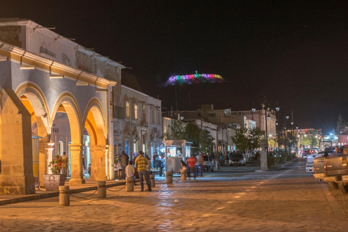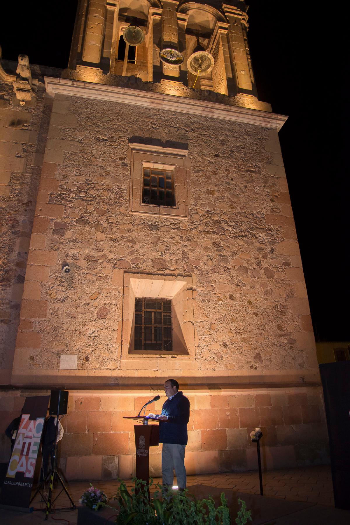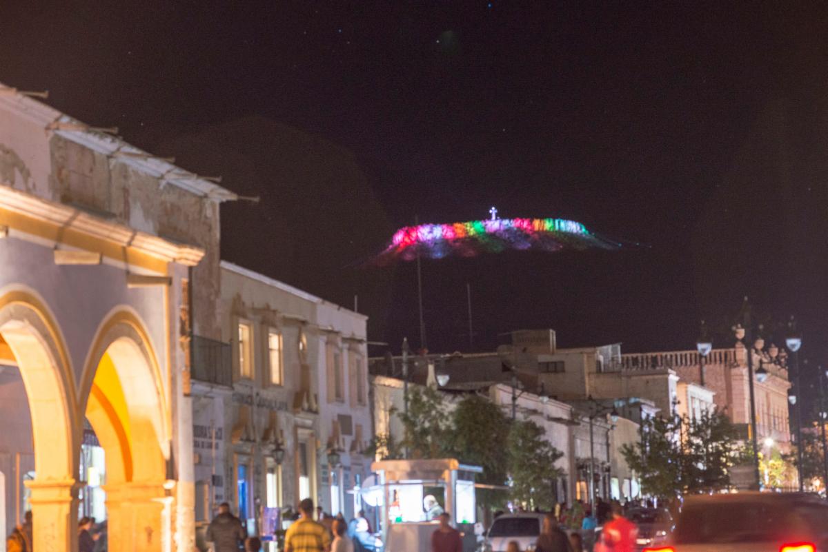 Sombrerete, Zac.- Gobierno del estado incrementó la infraestructura turística del pueblo mágico de Sombrerete, con la puesta en marcha de la iluminación escénica del Cerro del Sombreretillo, en donde se hizo una inversión de cerca de 4 millones de pesos.