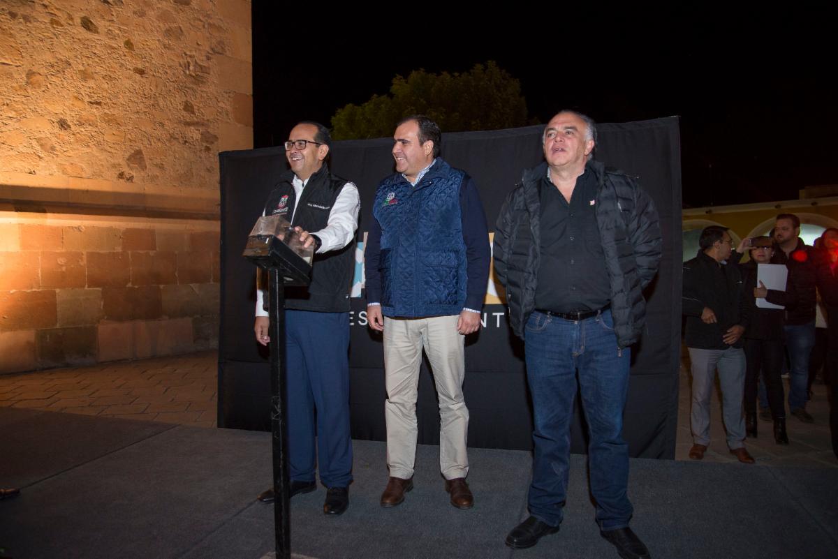 Jorge Luis Pedroza Ochoa, secretario de obras públicas y el Secretario de Turismo Eduardo Yarto, en representación del Gobernador Alejandro Tello, pusieron en marcha la iluminación escénica que, fortalecerá a uno de los atractivos turísticos más importantes de Sombrerete como es el Cerro del Sombreretillo.
