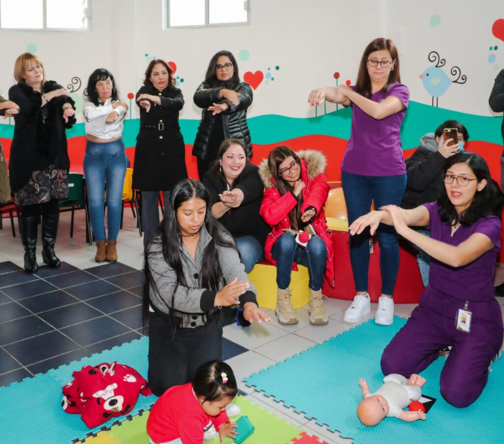 Este lugar es complementado con terapias de estimulación temprana, mediante ejercicios que aportan al desarrollo de las y los bebés, atendidos por capacitadoras y capacitadores que se preparan con talleristas del programa “Mil Días de Vida”, que emprende el Sistema Estatal DIF.