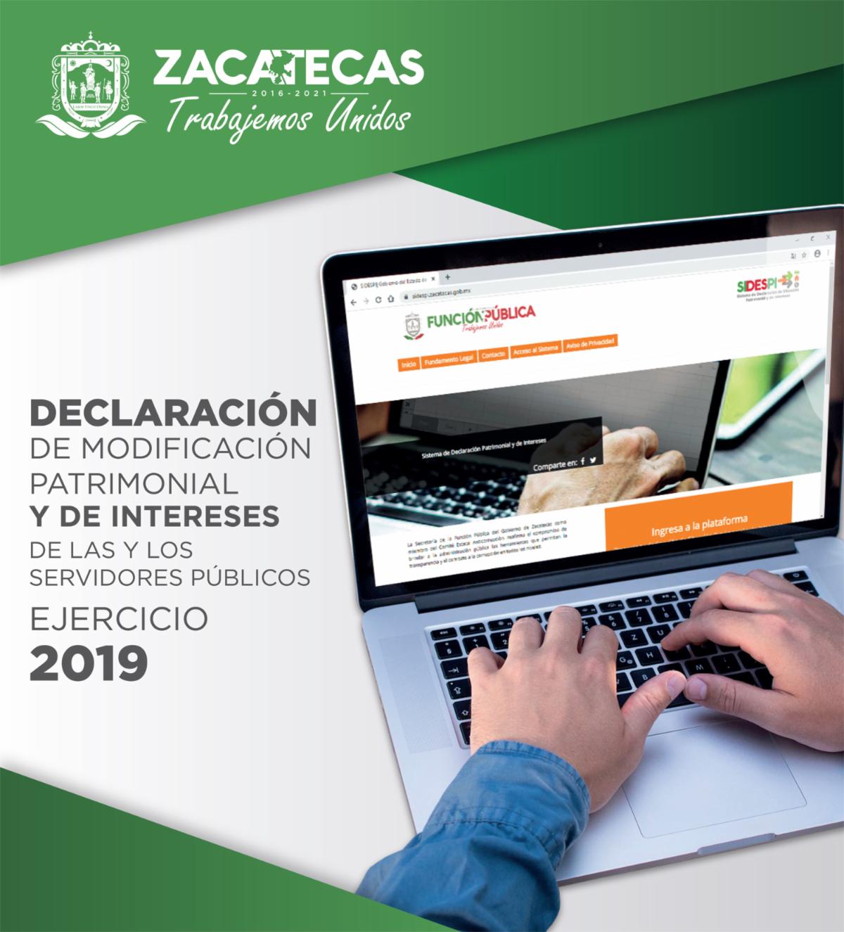 Zacatecas, Zac.- Con un padrón de 5 mil 564 sujetos obligados, el Gobierno del Estado inicia el periodo de declaraciones de situación patrimonial del ejercicio 2019, mismo que abarcará todo el mes de mayo y debe presentarse, como cada año, se a través de la plataforma https://sidespi.zacatecas.gob.mx.