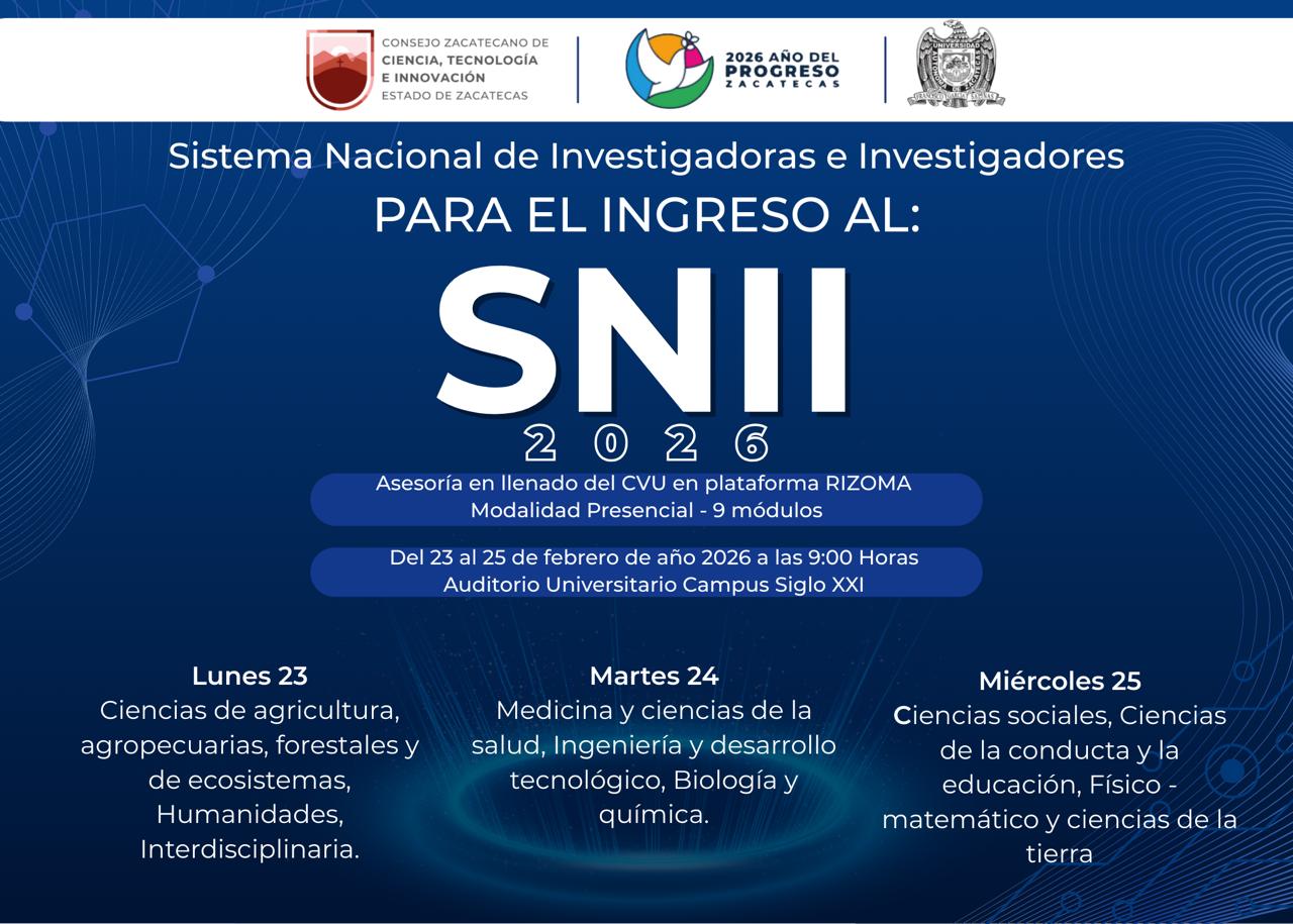 Zacatecas, Zac., 12 de febrero de 2026.- El Gobierno del Estado, a través del Consejo Zacatecano de Ciencia, Tecnología e Innovación (Cozcyt) y la Universidad Autónoma de Zacatecas (UAZ) llevarán a cabo los talleres de Fortalecimiento del Currículum Vitae Único (CVU), para personas interesadas en participar en la Convocatoria del Sistema Nacional de Investigadoras e Investigadores (SNII) 2026.