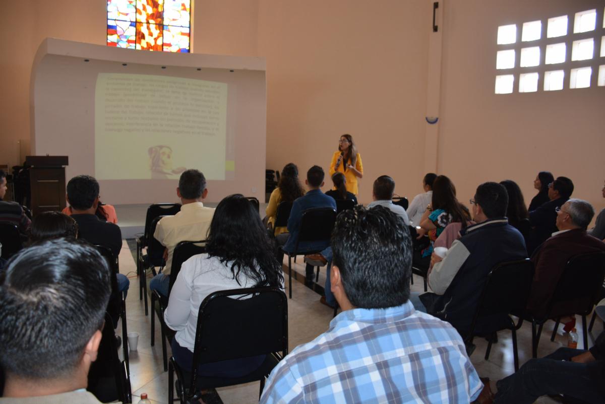 Michelle Alejandra Díaz Alvarado, especialista en la Seguridad en el Trabajo del Instituto Mexicano del Seguro Social (IMSS), fue la encargada de impartir la conferencia Factores Psicosociales; Importancia y Prioridad de la Prevención del Estrés. Asistieron más de 50 miembros de las Comisiones de Seguridad e Higiene del Instituto.