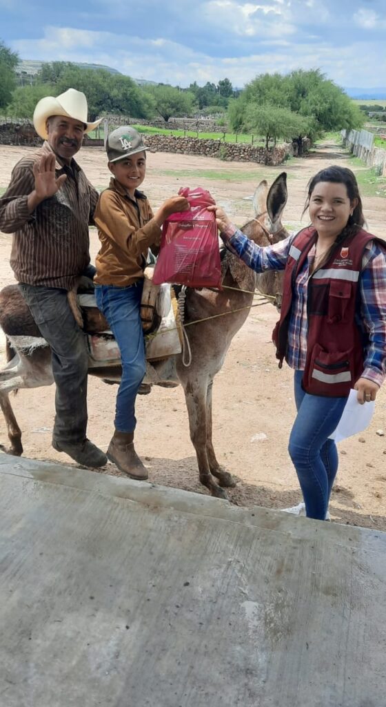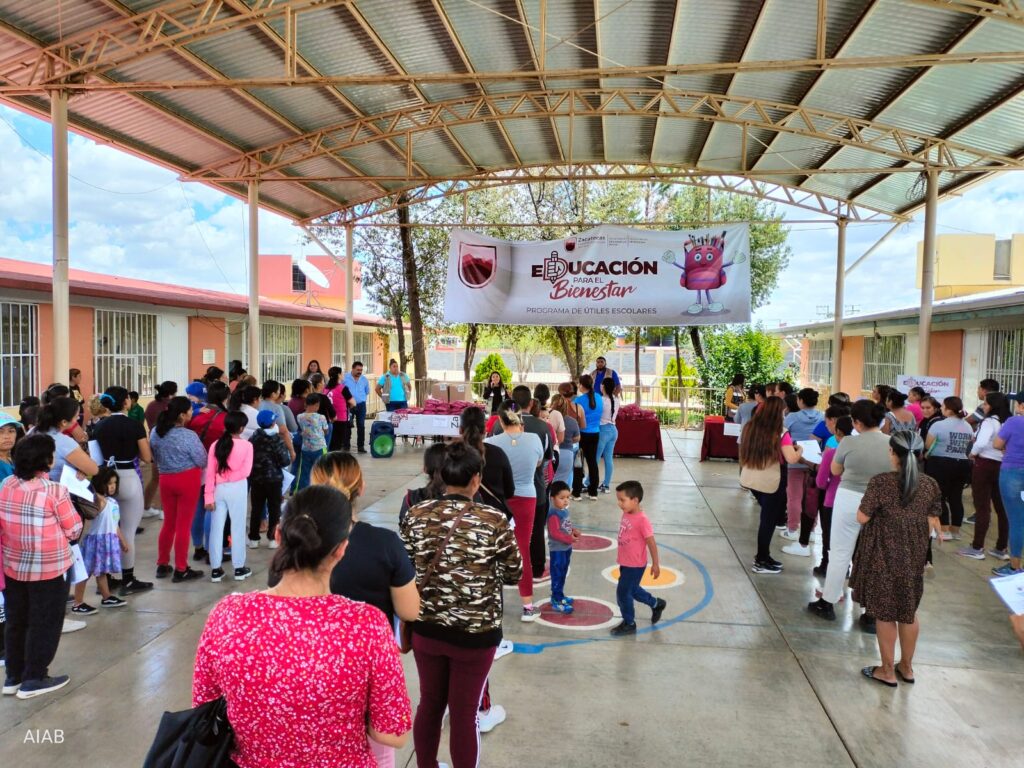 Este miércoles, niñas, niños y adolescentes de una comunidad y la cabecera municipal de Pinos recibieron, en compañía de sus madres o padres, las libretas, lápices, colores y demás útiles con las que empezarán su ciclo escolar 2023-2024.