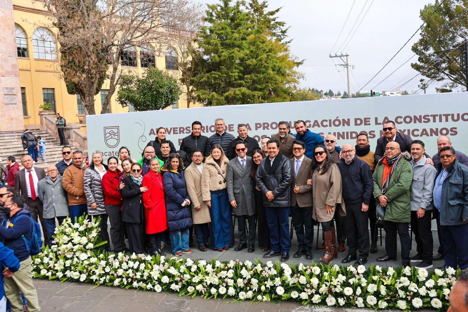 Zacatecas, Zac., 5 de febrero de 2026.- Al conmemorar el CIX Aniversario de la promulgación de la Constitución Política de los Estados Unidos Mexicanos, el Secretario General de Gobierno, Rodrigo Reyes Mugüerza, reconoció en el Gobernador David Monreal Ávila a un hombre que ha sabido honrar la conciencia ciudadana del pueblo de Zacatecas y avanzar en el objetivo primordial de brindar igualdad de oportunidades a todos y todas.