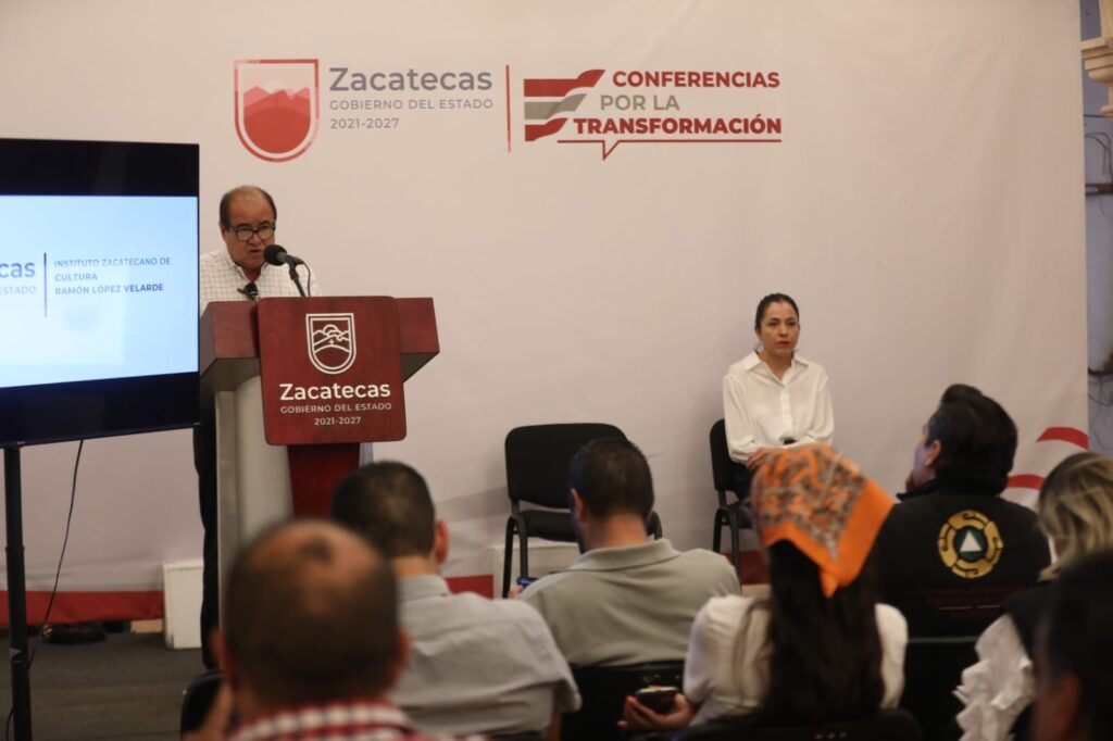 Así lo dieron a conocer los titulares del Instituto Zacatecano de Cultura (IZC) “Ramón López Velarde”, María de Jesús Muñoz Reyes, y el Secretario de Turismo (Secturz), Le Roy Barragán Ocampo, en la Conferencia por la Transformación, celebrada este miércoles en el Salón de Recepciones de Palacio de Gobierno.