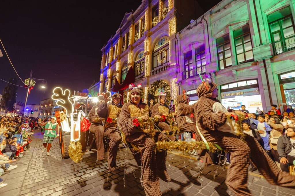 Cada carro alegórico narró una historia navideña distinta, adornado con esferas brillantes, luces multicolores, árboles de Navidad, regalos gigantes y escenas invernales que despertaron sonrisas y aplausos, a lo largo del recorrido.