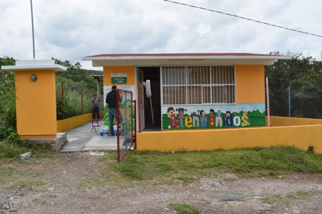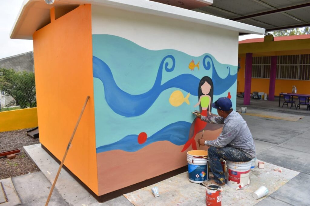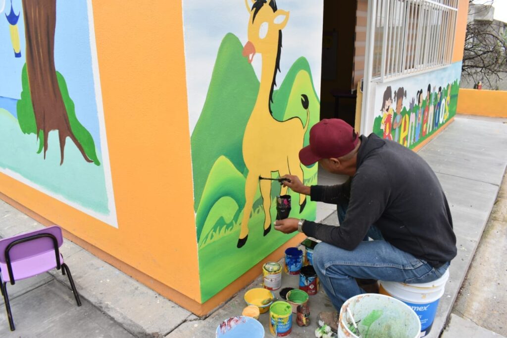 Jalpa, Zac., Como parte de los compromisos del Presidente Municipal Lic. Noé Guadalupe Esparza Martínez, a través de sus diferentes áreas, está el dar mantenimiento y rehabilitación a espacios públicos y educativos. En días recientes el personal de Parques y Jardines, mediante integrantes del grupo de pintura, realizaron trabajos de mejoramiento y embellecimiento en el Preescolar Comunitario de la localidad de La Chaveña, rehabilitando la pintura en todas las áreas de dicha institución.