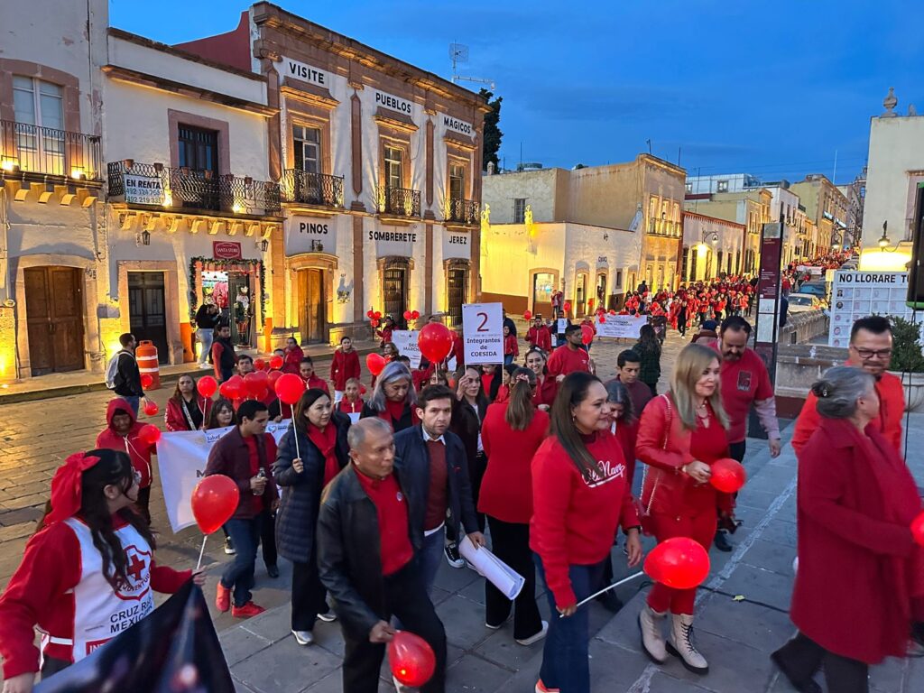Zacatecas, Zac., 1 de diciembre de 2025.- Con una nutrida participación de personas de todas las instituciones que integran el Consejo Estatal para la Prevención y control del Sida (COESIDA), así como de la sociedad civil, la tarde de este lunes, se realizó la Marcha Silenciosa en Respuesta ante el VIH/Sida, la cual recorrió las principales calles del Centro Histórico de la capital zacatecana.