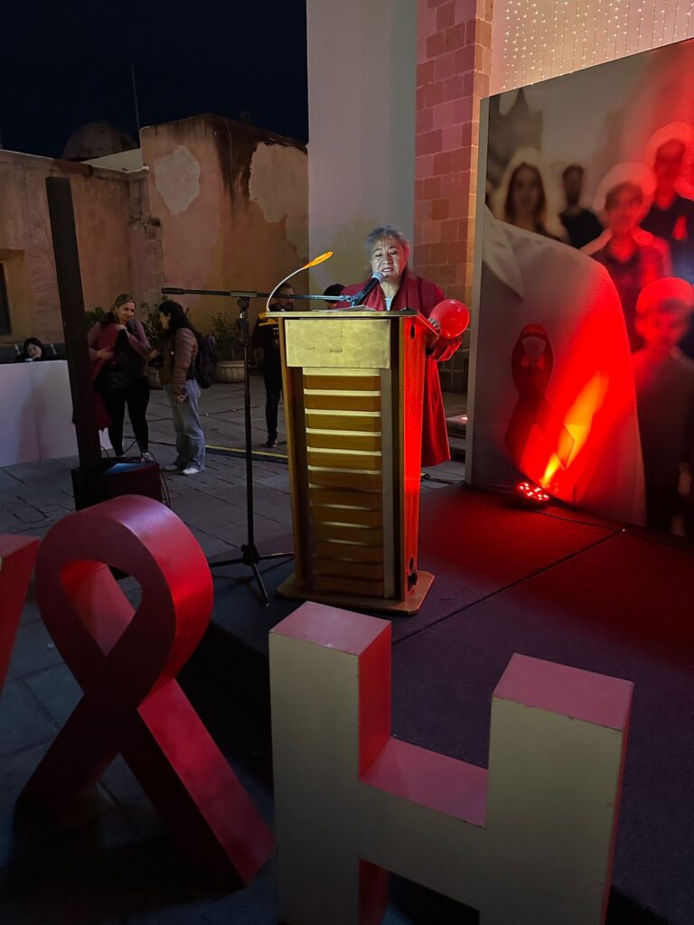 Ana María Monreal Ávila, directora de Salud Pública de la Secretaría de Salud de Zacatecas (SSZ), encabezó la ceremonia conmemorativa de este movimiento, en la Explanada del Congreso, en donde refrendó el compromiso de la institución para garantizar el acceso a servicios de atención del VIH y recordó que la adherencia al tratamiento es el factor fundamental para el control virológico de las y los pacientes que viven con este virus.