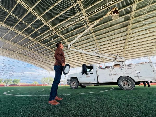 ⚽️Para brindar mejores condiciones a los espacios deportivos se trabaja en la 📍Canchita De Fútbol del Rosario, donde se están colocando lámparas de mayor potencia para lograr una mejor iluminación 💡, también se construye una nueva losa de concreto en un espacio donde a causa de las lluvias se generaba encharcamiento. 🌦️🤝Gracias al equipo de Obras Públicas y Alumbrado es que se trabaja en este espacio 🦺