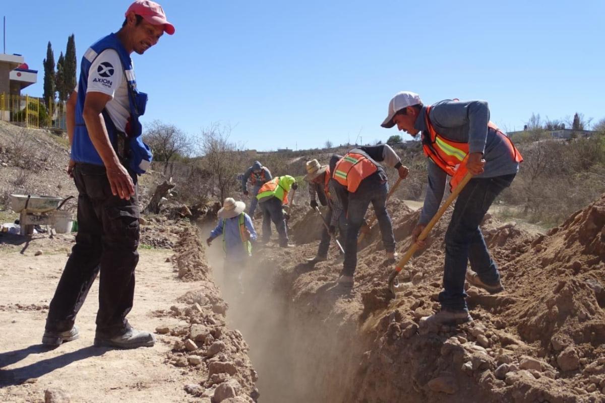Además, en la comunidad Pastelera se construye la primera etapa de la red de alcantarillado, que incluye suministro de tubería, además de 49 pozos de visita, 87 descargas domiciliarias, el suministro e instalación del colector con 28 pozos de visita y del emisor con tres pozos de visita.