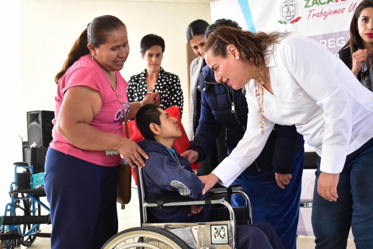 Recibieron sillas de rueda, bastones blancos, andaderas, becas de pañales y carriolas PCI, un total de 400 personas de Jalpa, Huanusco, Tabasco, Apozol, Juchipila, Moyahua, Tepechitlán, Momax, Tlaltenango, Trinidad García de la Cadena, Santa María de la Paz, Teúl de González Ortega, Atolinga y Florencia de Benito Juárez.