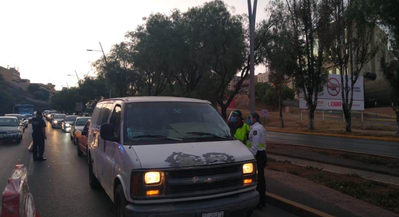 En los filtros de disuasión sanitaria, activados desde el fin de semana en bulevar metropolitano Zacatecas-Guadalupe, se exhorta a las y los automovilistas a permanecer en casa mediante una estrategia de revisión de las unidades de motor que se realiza de manera aleatoria.