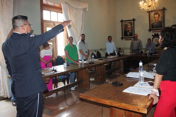 Después de fungir como encargado de la Dirección de Seguridad Pública, el alcalde José Humberto Salazar Contreras le tomó la protesta de ley al ahora nuevo director durante la sesión de cabildo. El nombramiento fue respaldado por el voto de los 10 regidores asistentes a la asamblea, la síndica y el presidente.