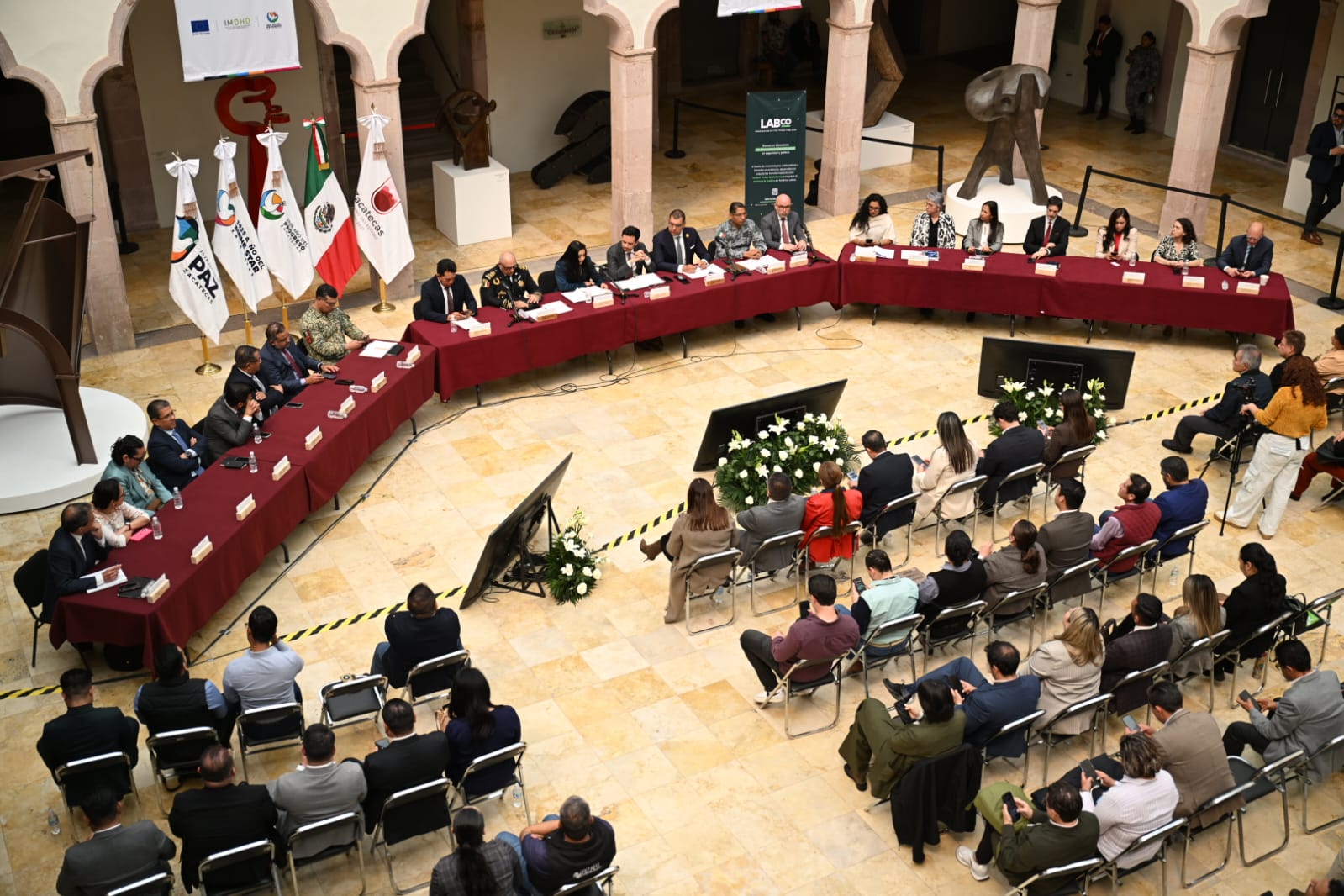 Además, el General Arturo Media Mayoral, secretario de Seguridad Pública; Thomas Favennec, director ejecutivo de LabCo; Silvia Patricia Chica, directora Ejecutiva del Instituto Mexicano de Derechos Humanos y Democracia; Maricela Dimas, presidenta de la Comisión de Derechos Humanos del Estado de Zacatecas, así como funcionarios federales y estatales.