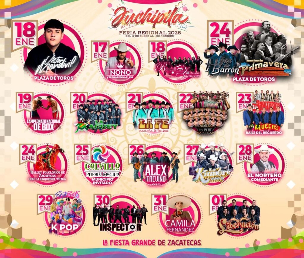Heriberto Álvarez Quezada, presidente del Patronato de la Feria Regional de Juchipila, expresó que se trata de un programa muy variado que incluye atracciones para toda la familia, con un amplio cartel de artistas, corridas de toros, charreadas, eventos deportivos y juegos pirotécnicos, en el que destacan celebraciones taurinas y la coronación de la reina.