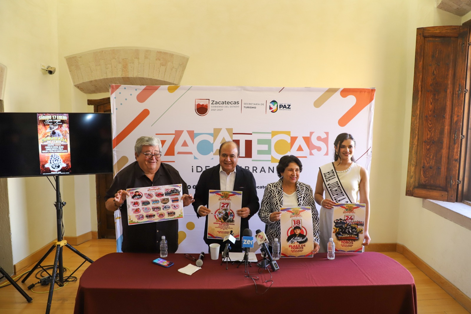 Zacatecas, Zac, 7 de enero de 2026.- Bajo la directriz del Gobernador David Monreal Ávila, para el fortalecimiento del sector turístico, la promoción de la riqueza cultural, gastronómica e histórica del estado, además de aprovechar la contribución de la comunidad migrante, se presentaron las actividades de la Feria Regional de Juchipila 2026.