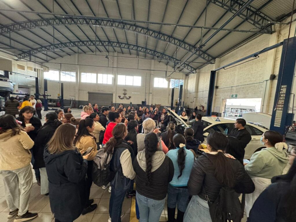 Durante las jornadas, las participantes aprendieron sobre revisión de niveles de aceite, presión de llantas, cambio de batería, señales del tablero y uso adecuado de herramientas, además de realizar prácticas sobre reemplazo de llanta y atención a emergencias viales.