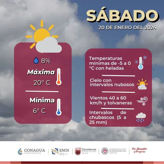 Pronóstico del #ClimaEnZacatecas