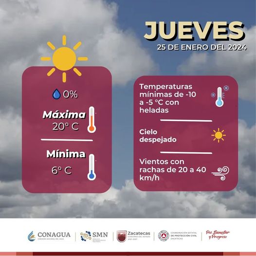 Pronóstico del #ClimaEnZacatecas jueves 25 de enero del 2024