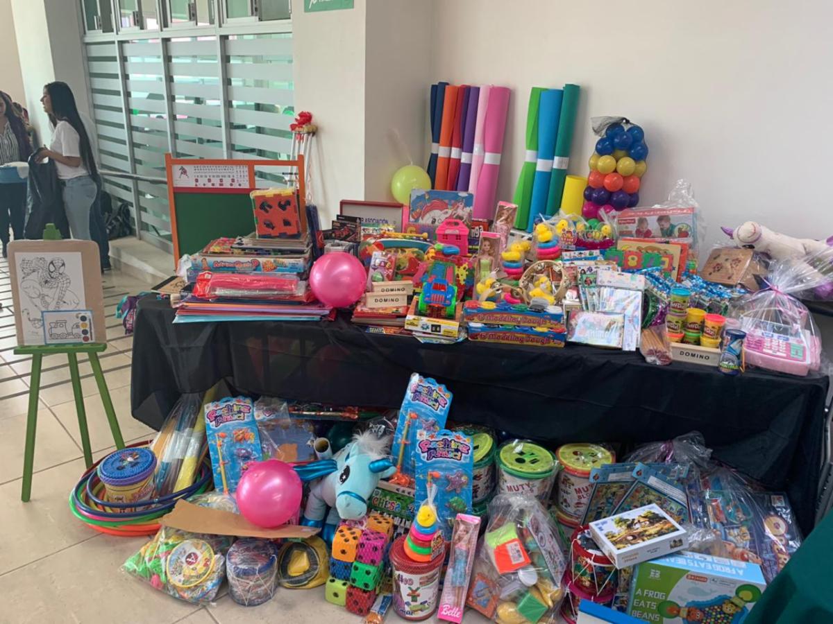 El donativo fue recibido por Adriana Torres Rodríguez, coordinadora general del CREE, a quien entregaron material como rompecabezas, plastilina, lotería, pliegos de foamy, pelotas, aros para ensartar, muñecas, acuarelas,cuentos, cuadros geométricos, entre otras cosas.