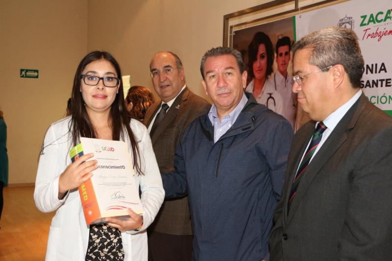 Los médicos pasantes que en esta ocasión recibieron reconocimiento por su desempeño durante el servicio social, fueron: Janeth Aidé Sarmiento, de la Jurisdicción Número 1; Manuel Alfaro, de la Jurisdicción Número 2; Maripaz Vargas de la Jurisdicción Número 3. Asimismo, Mariel Dávila, de la Jurisdicción Número 4; Christian E. Aguayo, de la Jurisdicción Número 5; Stephanía Olguín, de la Jurisdicción Número 6, y Monserrat Pérez, de la Jurisdicción Número 7.