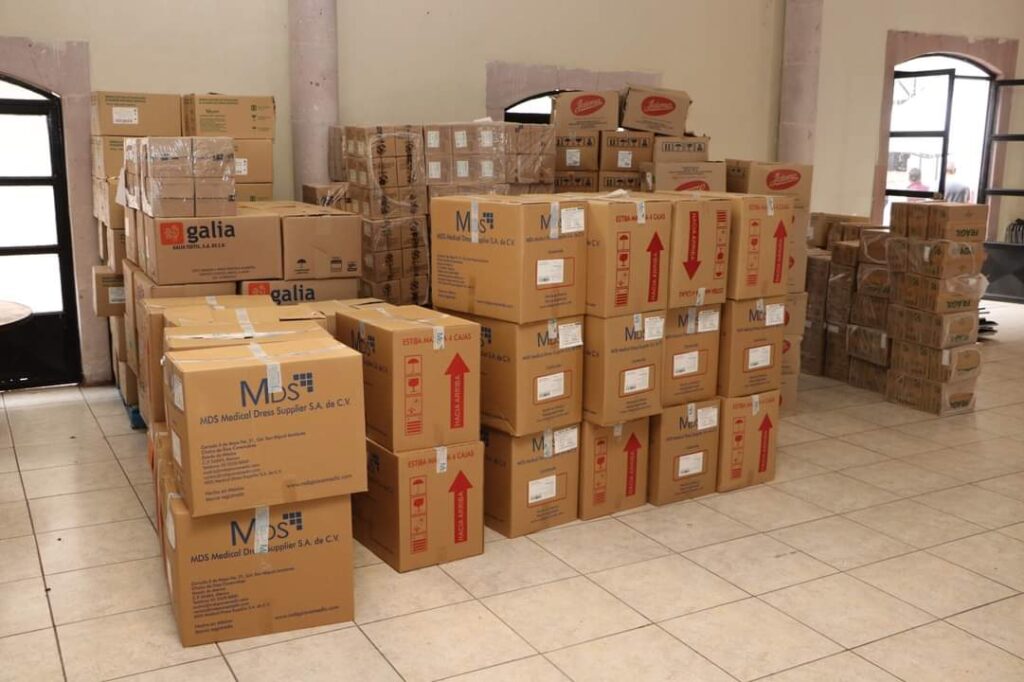 La Presidenta Honorífica del SEDIF, Sara Hernández de Monreal, recibió más de 200 mil cubrebocas, cerca de 1 mil 300 paquetes de venda elástica, 1 mil 200 paquetes de gasa, 13 mil 400 piezas de guantes y 300 cajas de jeringas, elementos que son parte de lo necesario para cubrir incidentes que requieran curación y apoyen al abasto de equipo médico.