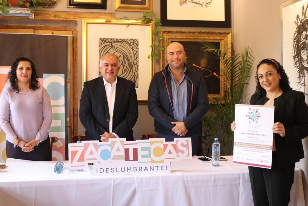 Zacatecas, Zac.- Autoridades de la Secretaría de Turismo (Secturz) entregaron a diversos establecimientos zacatecanos ocho distintivos y certificaciones otorgadas por la Secretaría de Turismo Federal, los cuales les permitirán mejorar las prácticas de servicio que ofrecen a turistas, visitantes y locales.