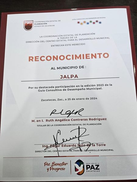 Este reconocimiento es resultado del trabajo constante para el desarrollo de nuestro municipio. ¡Excelente tarde!
