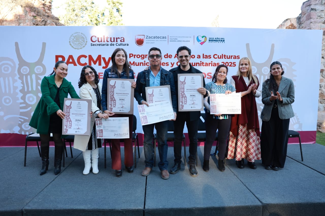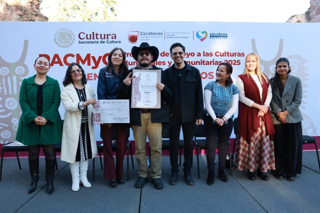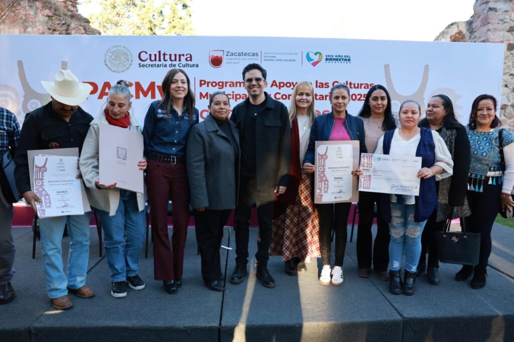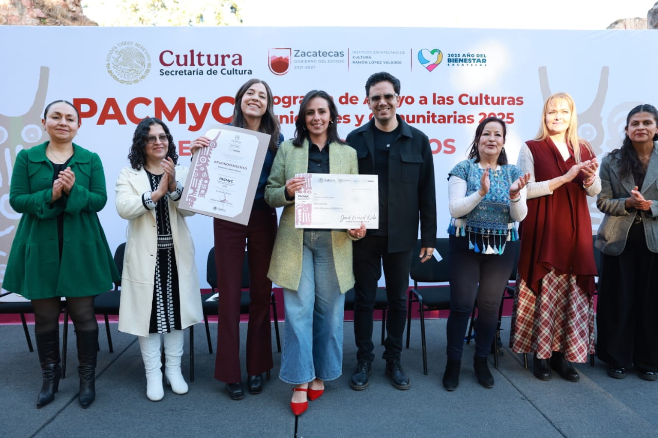 Zacatecas, Zac., 18 de diciembre de 2025.- Con una inversión conjunta superior a 3 millones de pesos, el Gobierno de Zacatecas y la Secretaría de Cultura del Gobierno de México entregaron estímulos del Programa de Apoyo a las Culturas Municipales y Comunitarias (PACMyC) 2025, que benefició a 32 proyectos comunitarios en toda la entidad.